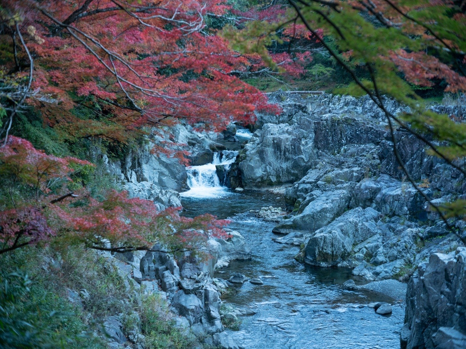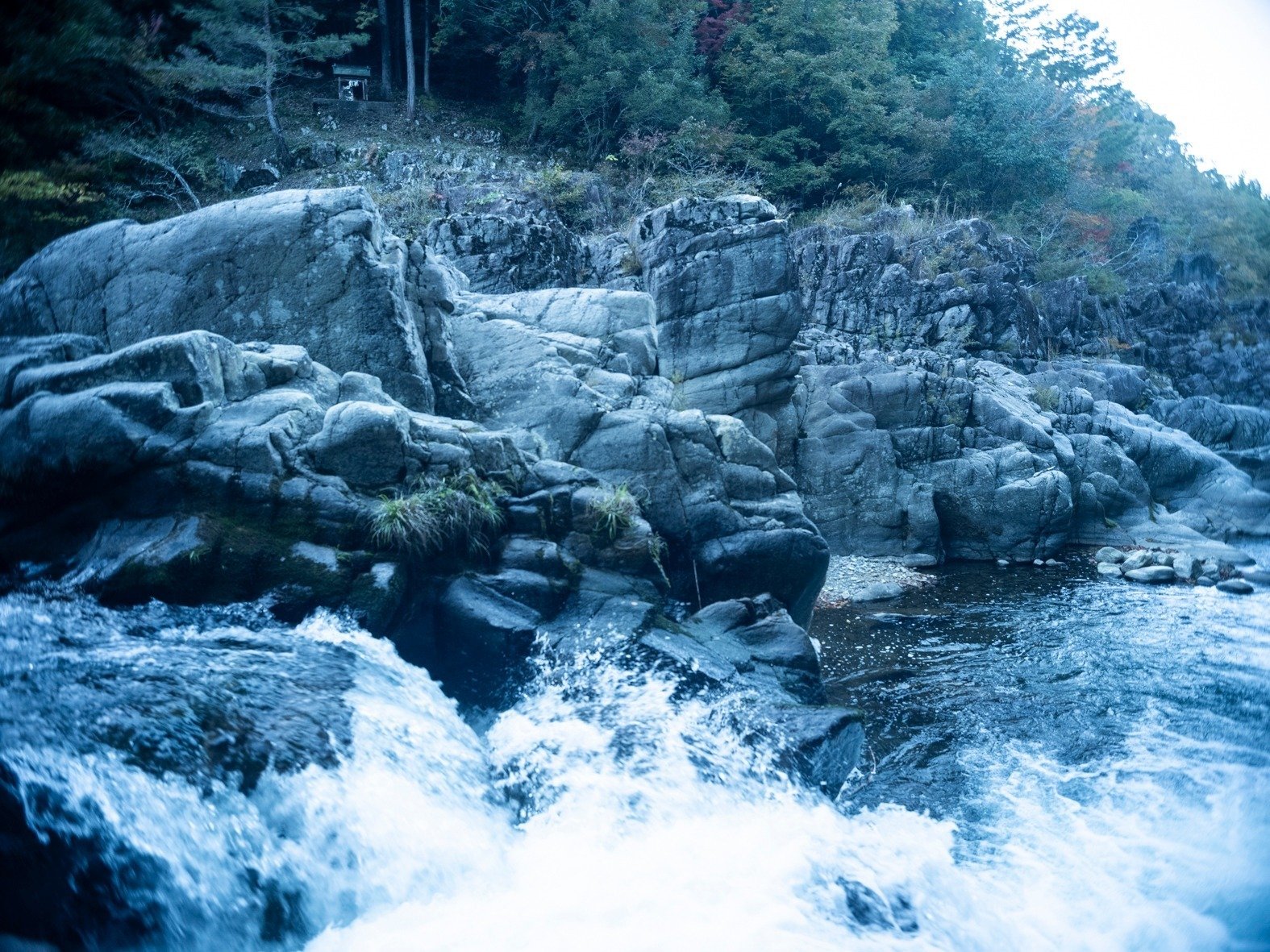 この川の水は、湖東流紋岩の白く輝く岩盤を引き裂きながら流れ下るが、ここを大蛇ヶ淵と呼び、そこに大瀧神社が鎮座している。