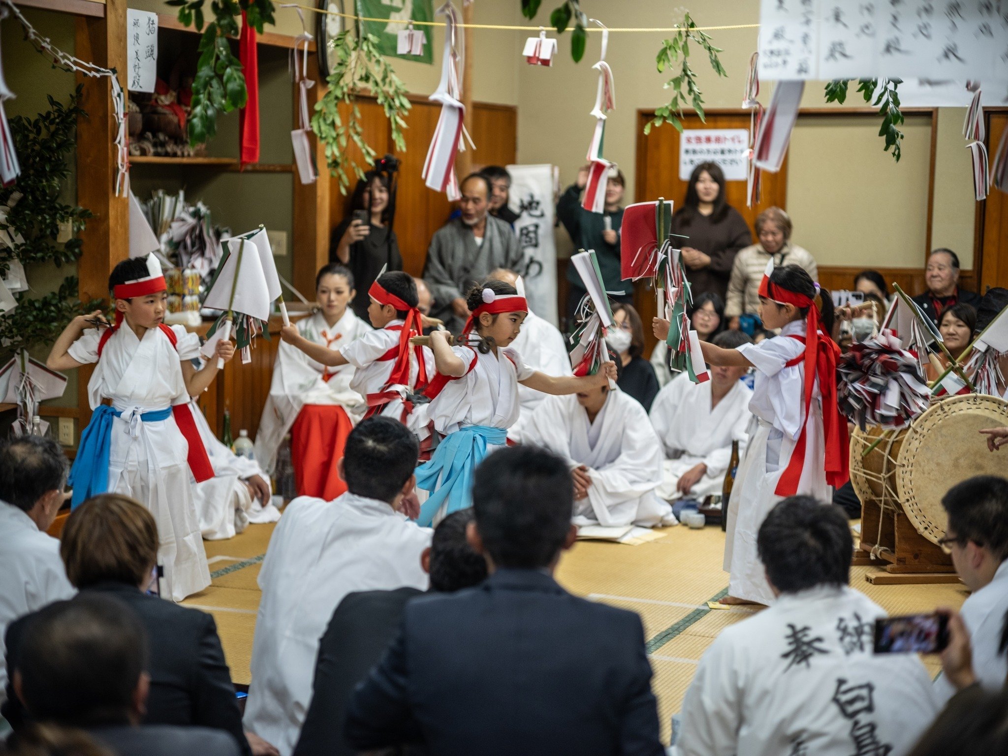 大人が外に出ていかないから子供もたくさんいる。そして、子供達も神楽を演じるので、それをとても楽しみにしている。でも、本番前はとても緊張しているらしい。