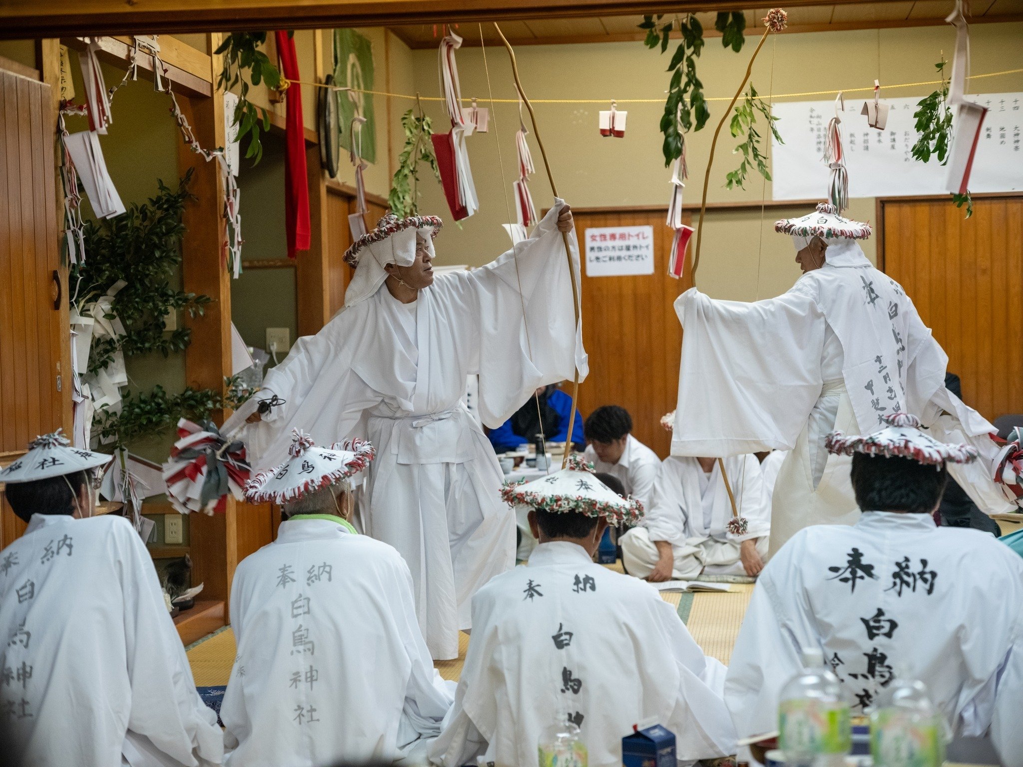 地元の人に話を聞くと、向山日添の神楽は、地元に残り続けている人だけで執り行われている。